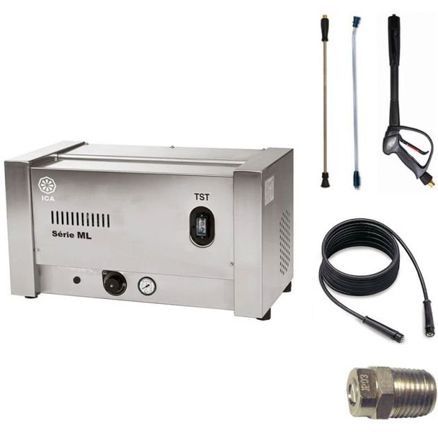 Par ailleurs, la pression de service est contrôlée en permanence par le biais d’un manomètre professionnel, assurant ainsi le fonctionnement optimal de l’appareil. D’une robustesse à toute épreuve grâce à sa structure en acier inoxydable, le nettoyeur haute pression professionnel POSTE FIXE SML 200/21 TRI est également d’une grande durabilité grâce à son réservoir d’eau en inox. Ce nettoyeur haute pression, qui est compatible agroalimentaire, est fourni avec une poignée de pulvérisation, une lance simple de 70 cm, une buse haute pression et un tuyau flexible HP de 10 m